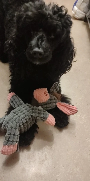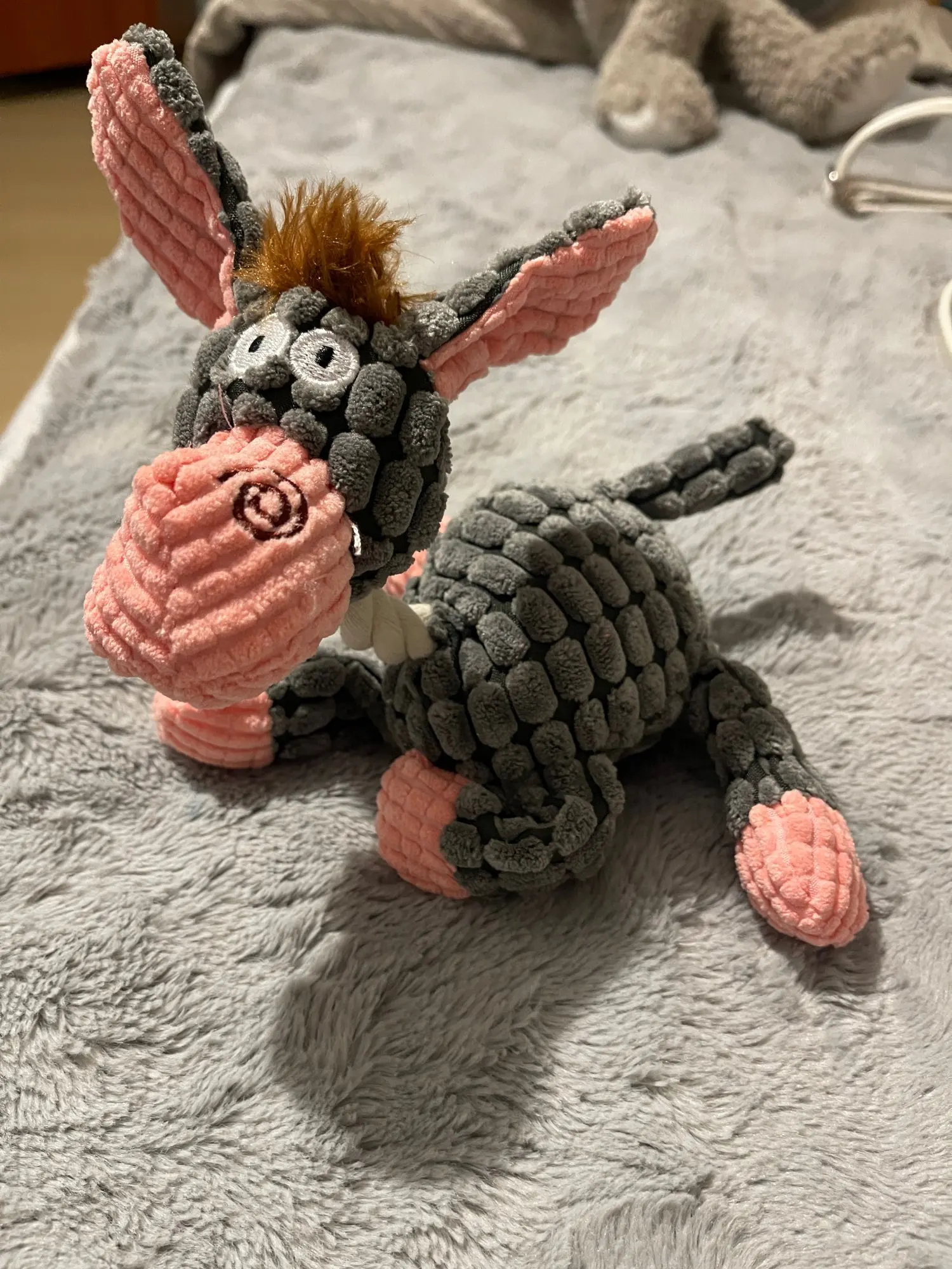 Camille Lambert Very high quality toy, soft, beautiful, with a squeaker inside. I recommend it, I am very pleased with the choice.